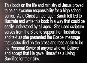 HomeAbout the ArtistBehind the ScenesThe NativityLinksContactIllustrations PortfolioJESUS CHRIST The Way The Truth The Life.  Written and illustrated by Sarah Meadows The ministry of Jesus Jesus: the Good Shepherd A new heaven and earthThe empty tomb:  Jesus is risen!Jesus died for allThe CrucifixionPortfolio